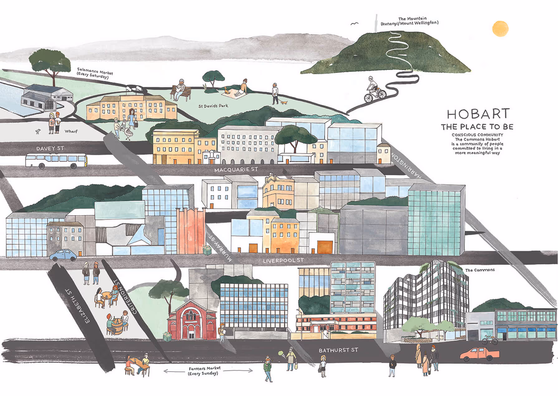 The Commons Hobart is built around community. Shared spaces are central: rooftop gardens, a communal laundry, sun terrace with views up to kunanyi / Mt Wellington, and vegetable gardens weave interaction into everyday life.