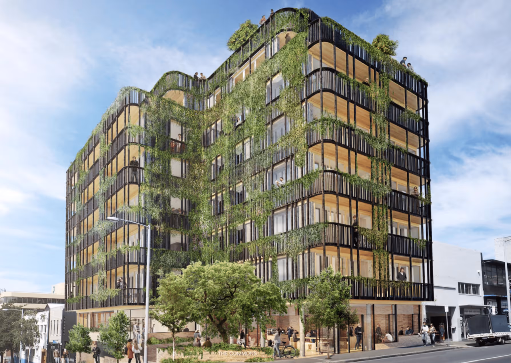 Residents are encouraged to engage — from a committee that maintains common spaces, to green-walls with native climbers that enrich the streetscape.